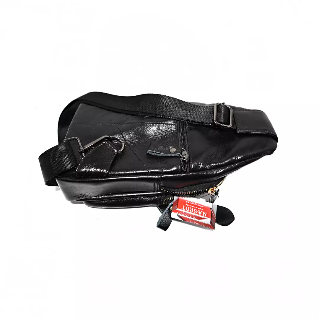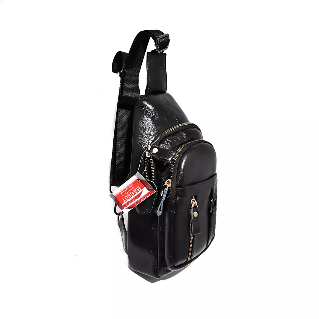 Esste o borseta tip rucsacel cu multe compartimente care se poarta pe o parte, cureaua este reglabila.