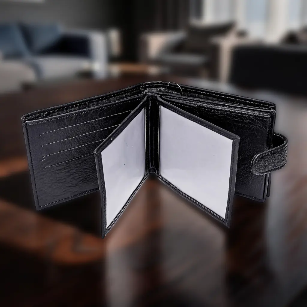 Compartiment bangnote: 1 compartiment generos pentru bancnote (21 cm lungime) + 1 buzunar interior cu fermoar pentru obiecte de valoare.